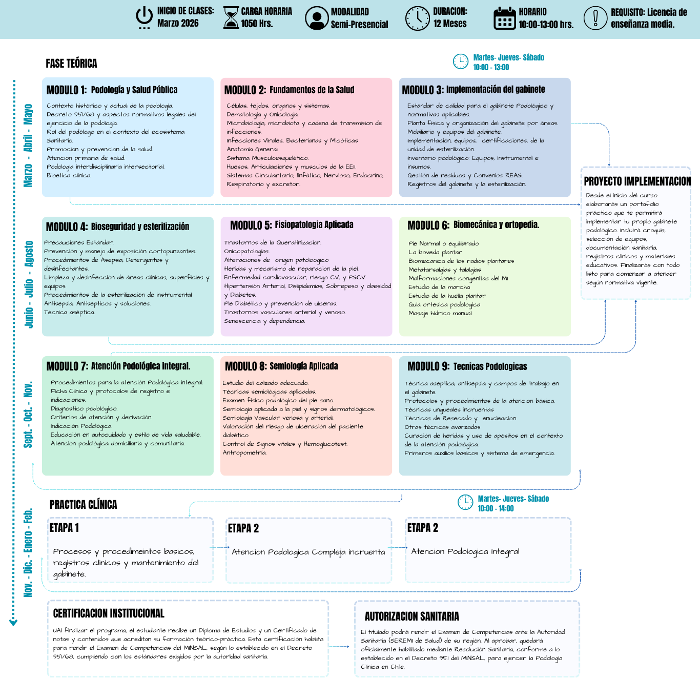- Quieres formarte como Podólogo/a Clínico/a desde cualquier ciudad de Chile.